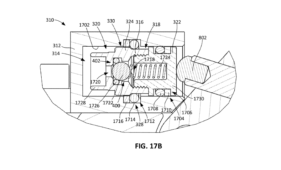 Figures 17B and 18B show a more detailed view of the valve itself in the opened and closed positions. The neutral cavity 318 is what is applying forward pressure to the valve.