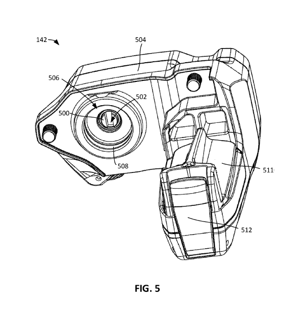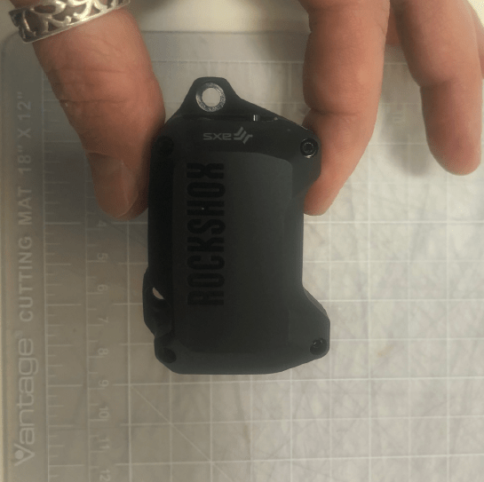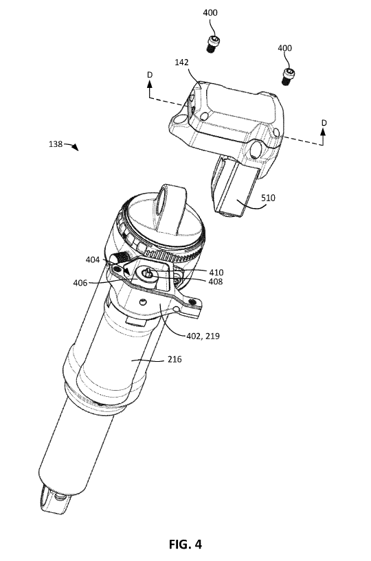 FIGs. 4 and 5 show the controller actually removed from the shock. This is actually pretty nifty. SRAM are doing this so you can replace the controller more easily, though they do say the controller can be permanent. Let’s hope we see the removable one in real-life.